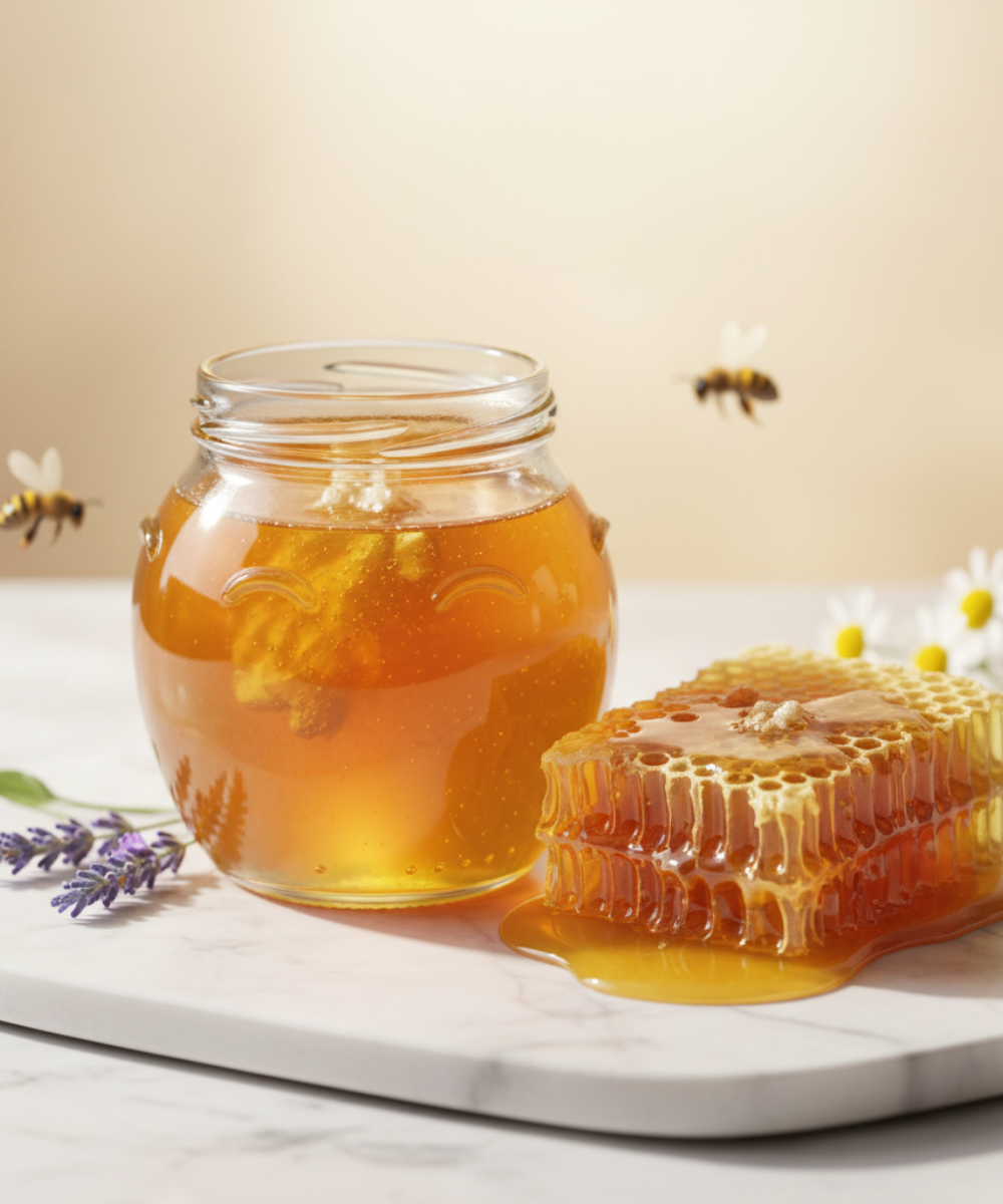 Le guérisseur naturel — Antibactérien puissant, non pasteurisé. Détruit les bactéries, accélère la cicatrisation des plaques, retient l'hydratation et réduit visiblement rougeurs et irritations.