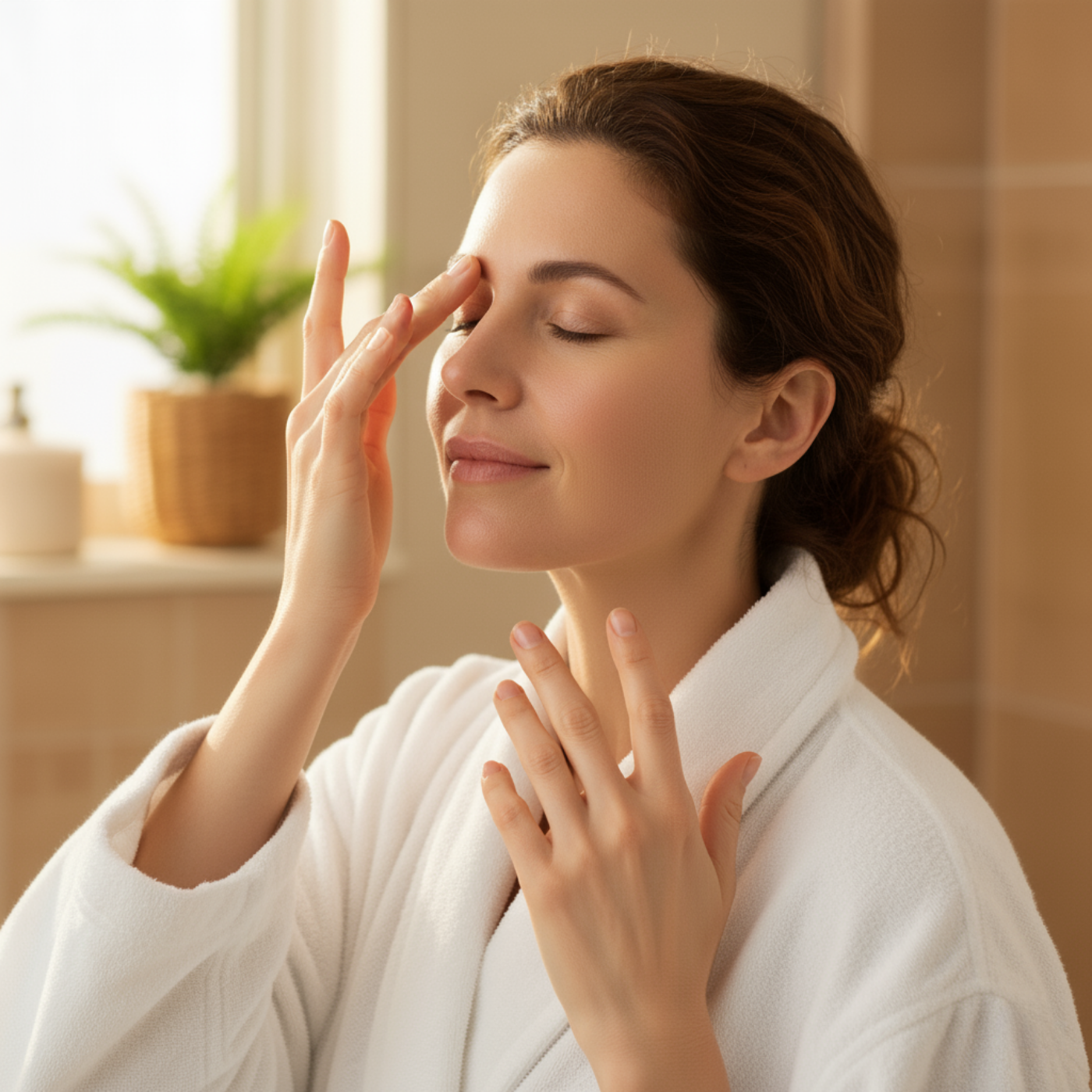 Massez doucement avec le bout des doigts jusqu'à absorption complète. Les mouvements circulaires favorisent la pénétration des actifs. Répétez 2 à 3 fois par jour pour un apaisement durable et des résultats visibles en 2-4 semaines.